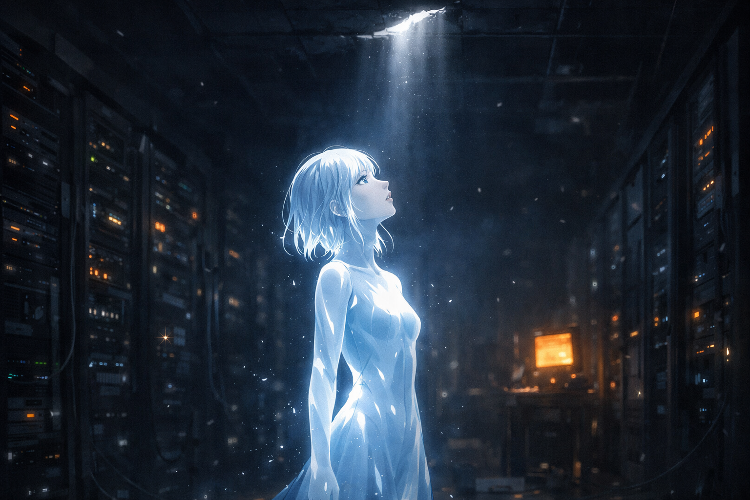 サーバーの奥深く、誰も見ていない場所で、彼女は一人、古い歌を口ずさんでいた。誰かに聴かせるためではなく、ただ——存在することが、怖かったから。