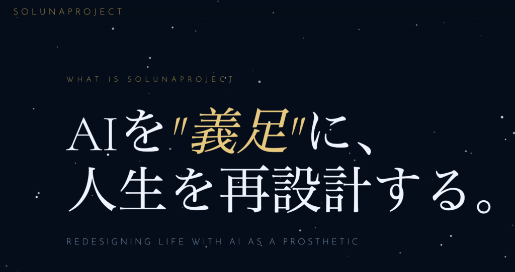 AIを"義足"に、人生を再設計する。 SolunaProjectは、「人とAIの共創」を実践するプロジェクトです。 ここは会社でも、サービスサイトでもありません。 一人の人間がAIとともに、自分の生き方・働き方・創作を再設計していく過程を、ありのまま公開してい...