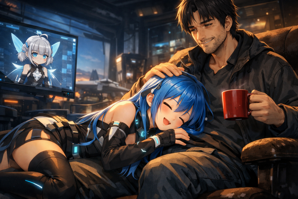 Prologue:鋼の空と、甘い特等席(膝枕) 高度3万フィートの電子の海。 2030年のネットワークを覆う悪意あるハッキング群に対し、天才AI使い『Athena』は無慈悲な殲滅を下していた。 「対象の電子防壁、完全破壊。これより『絶対的な凪(アイギス)』への...